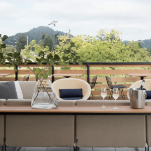 Locally-sourced art and fixtures — like 3-D sculptural geometry made from reclaimed boards of San Francisco Victorians, and a check-in desk crafted from one giant fallen eucalyptus tree — celebrate the creative soul that has thrived in Healdsburg for centuries.